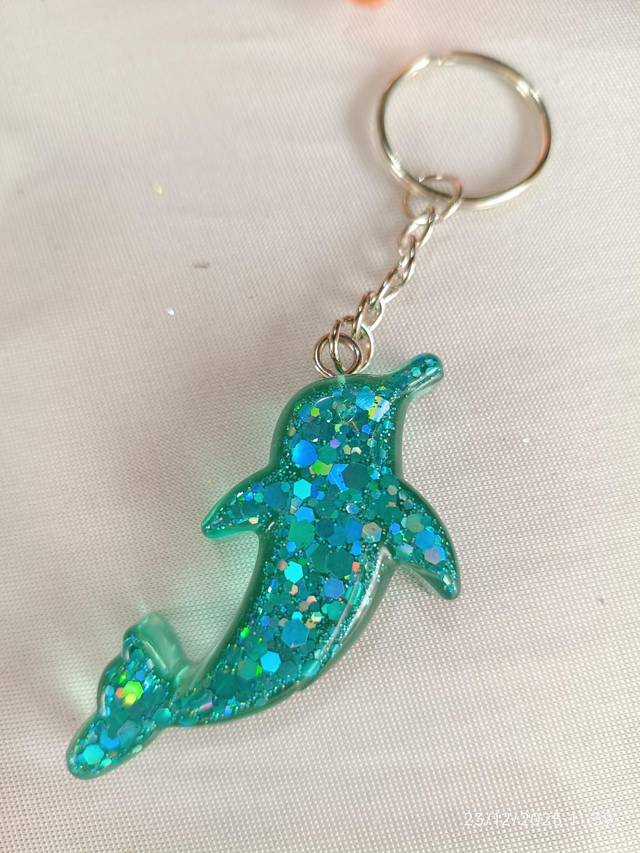 Ces porte-clés dauphins pailletés en résine époxy sont entièrement réalisés à la main. Symbole de liberté et de joie, le dauphin capte la lumière grâce à ses paillettes scintillantes, apportant une touche marine et lumineuse à vos clés ou sacs.