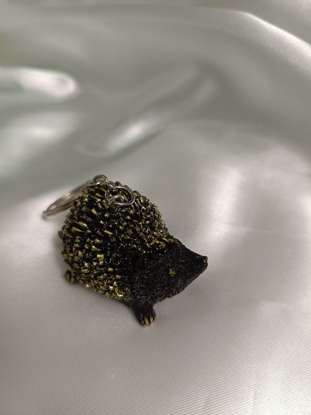 Ce porte-clés met en scène deux adorables hérissons. Le premier, noir aux épines dorées peintes à la main, contraste avec le second, entièrement doré. Un accessoire original et tendance !