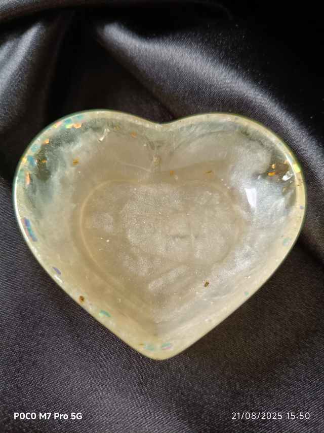 Voici un petit vide-poche en forme de cœur, parfait pour les boucles d'oreilles ou les colliers. Il est en résine époxy et je l'ai en plusieurs coloris. Il est idéal à poser sur une coiffeuse ou dans une salle de bain.
