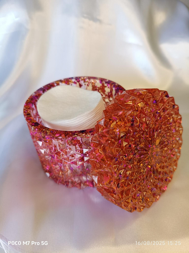 Imaginez une grande boîte à bijoux ronde précieux pour vos trésors. Sa forme est originale, avec des reliefs asymétriques qui lui donnent un aspect moderne.