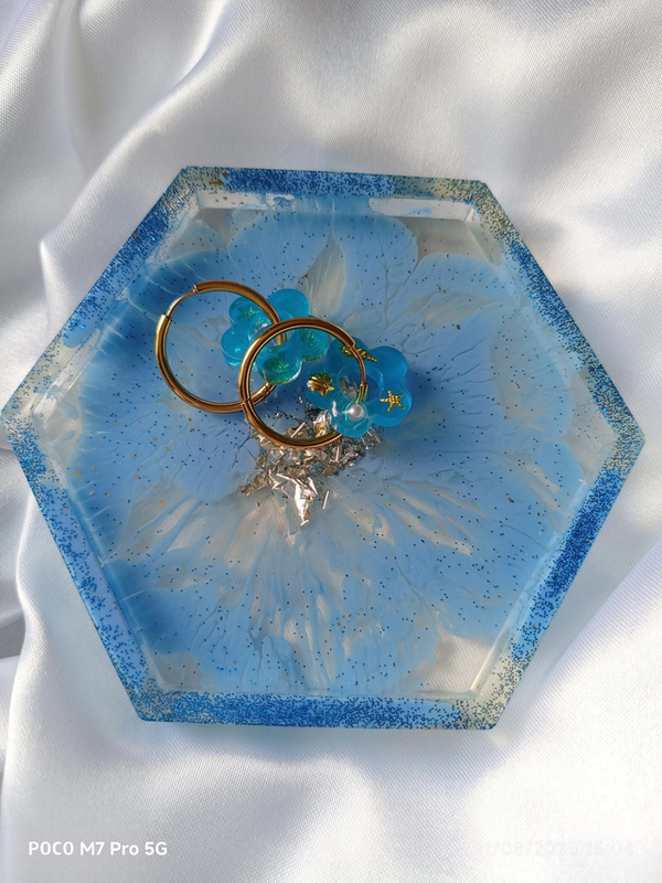 Voici un vide-poche hexagonal en résine époxy. Il est disponible en plusieurs coloris. Il est idéal pour ranger des bijoux ou des petits objets précieux. Vous l'imaginez sur une commode ou une table de chevet ?